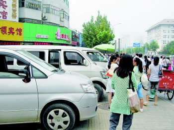 黑出租在洪家楼挺猖獗 7座面包车里塞14个学生
