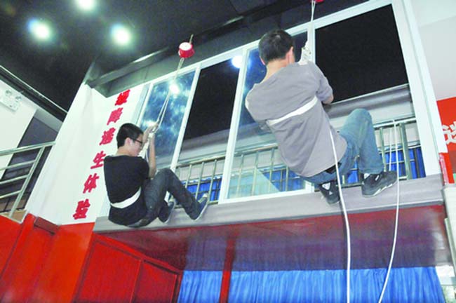 如果你住在3楼以上,当被困火场,已无法从门口逃生时,家中如有一条又长又粗的绳子,那么可将绳子拴在大橱柜或者窗框上,沿着绳子攀援而下,帮助逃生。