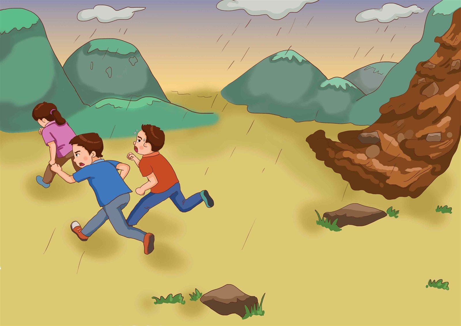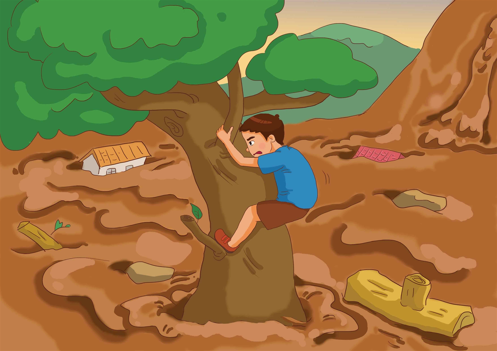 2、当泥石流来时,知道要快速地向更高处逃生。