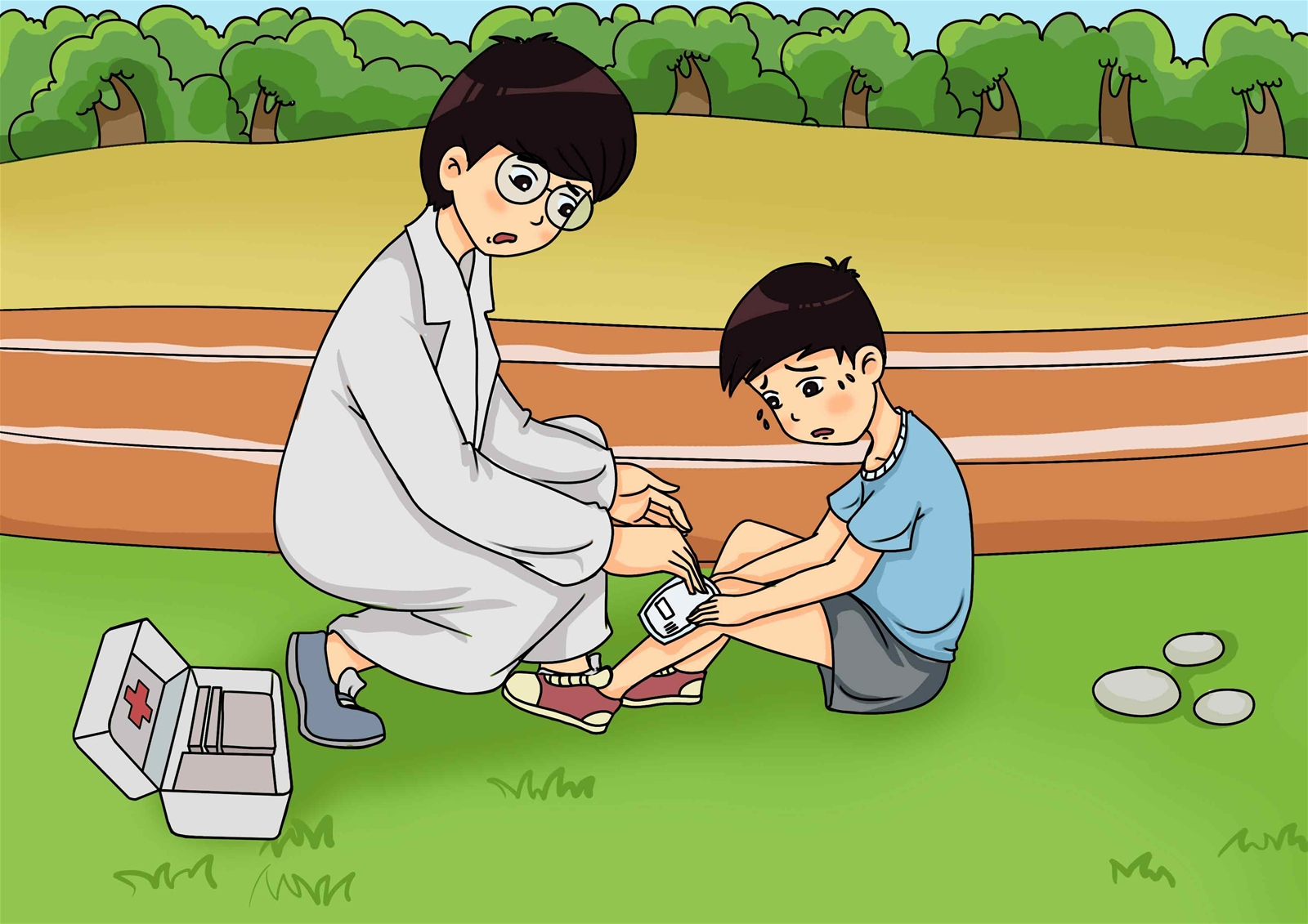 摔伤后如何止痛?你有什么好的建议吗,请帮这位受伤的同学出出主意。