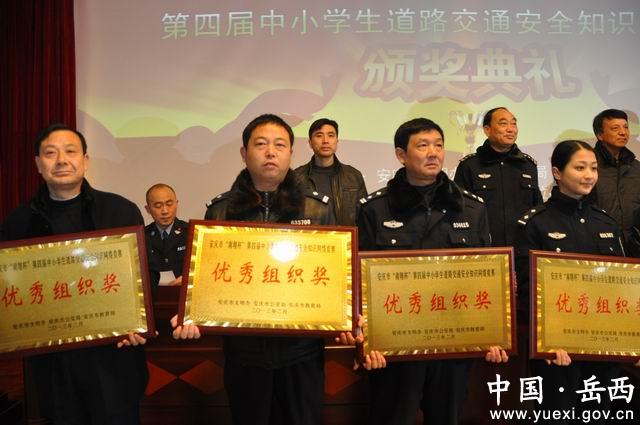 安庆市“南翔杯”第四届中小学生道路交通安全知识网络竞赛活动,从2012年9月份开始至2013年1月10日初赛结束,岳西县共有23222名学生注册参赛,参赛率为54%,在全市八县中排名第一。通过网络初赛岳西县有小学高年级组、初中组、高中组共18名学生获得决赛资格。在2月1日的现场决赛中,18名决赛选手通过电脑答题闯关形式,在规定时间内发挥出色,有3名学生获得一等奖,其余15名参赛学生分别获得二、三等奖,在颁奖典礼上,岳西县的网络竞赛活动得到了大赛组委会的充分肯定和表扬,岳西县实验小学、岳西县职教中心、岳西县汤池中学、岳西县中洲小学老师储小琼、丁丽、王福升、王小燕分别获得优秀指导教师奖,县教育局、县交警大队及岳西县实验小学、岳西县职教中心、岳西县汤池中学、岳西县中洲小学四所学校分别获得优秀组织奖。