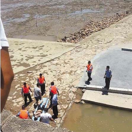 上午10点多,太阳渐渐热辣起来,最后一个落水男孩还是没有踪影,救援人员全力搜寻。