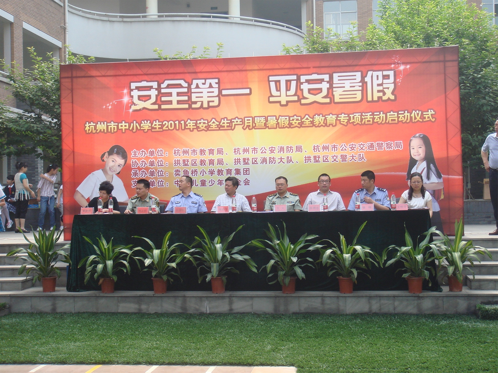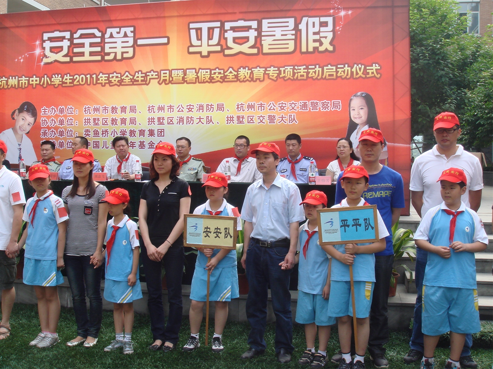 5月31日上午,“杭州市中小学生2011年安全生产月暨暑假安全教育专项活动”启动仪式在杭州卖鱼桥小学举行,杭州市教育局、杭州市公安消防局、杭州市公安交通警察局、中国儿童少年基金会领导代表出席了仪式,并做了重要讲话,领导指出,各单位和学校一定要以实际行动做好安全教育工作,通过开展丰富的安全教育活动、利用网络组织安全知识学习、开展安全知识竞赛等,提高孩子们的安全防患意识,防患未然,让孩子们度过一个平安快乐的暑假。