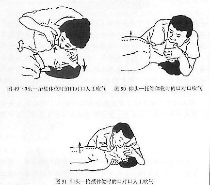 ◆当溺水者呼吸停止或极为微弱时,应立即实施人工呼吸法,必要时施行胸外心脏按压法。