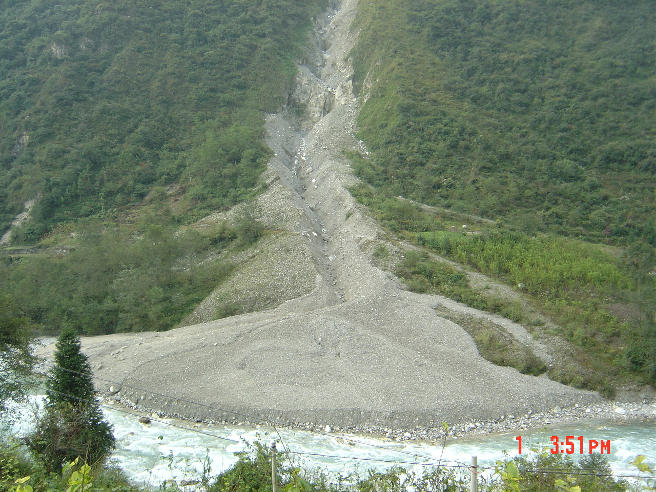 泥石流是介于流水与滑坡之间的一种地质作用。典型的泥石流由悬浮着粗大固体碎屑物并富含粉砂及粘土的粘稠泥浆组成。在适当的地形条件下,大量的水体浸透山坡或沟床中的固体堆积物质,使其稳定性降低,饱含水分的固体堆积物质在自身重力作用下发生运动,就形成了泥石流。