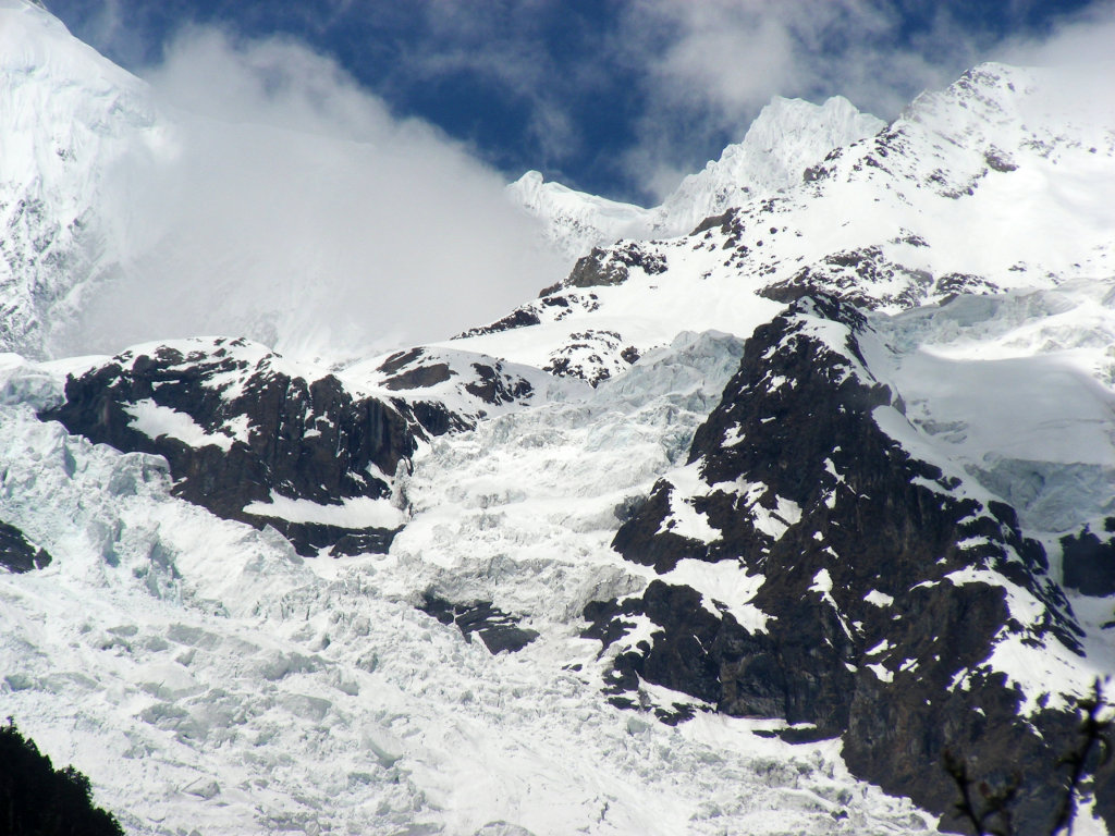 干雪崩夹带大量空气,因此它会像流体一样。这种雪崩速度极高,它们从高山上飞腾而下,转眼吞没一切,它们甚至在冲下山坡后再冲上对面的高坡。一般而言,大雪刚停,山上的雪还没来得及融化,或在融化的水又渗入下层雪中再形成冻结之前,这时的雪是“干”的,也是“粉”的。当此种雪发生雪崩时,气浪很大底层也容易生成气垫层。探险队遭遇此类雪崩时,人可以被裹入雪崩体中并随雪崩飞泻而下。但是干雪崩和粉雪崩对探险者致命的威胁相对较小。