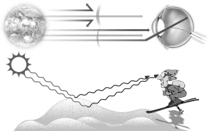 “雪盲”又称“目光眼炎”,是阳关中的紫外线经雪地表面的强烈反射对眼部造成的伤害。有眼红病、怕光、流泪、异物感、视物不清等症状。