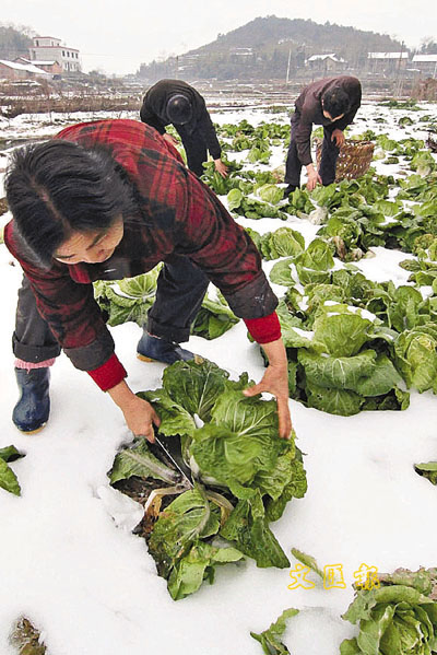 2、加强对大棚蔬菜和在地越冬蔬菜的管理,防止连阴雨雪、低温天气的危害,雪后应及时清除大棚上的积雪,既减轻塑料薄膜压力,又有利于增温透光;同时加强各类冬季蔬菜、瓜果的储存管理。