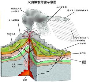 破坏环境 火山爆发喷出的大量火山灰和暴雨结合形成泥石流能冲毁道路、桥梁,淹没附近的乡村和城市使得无数人无家可归。 泥土、岩石碎屑形成的泥浆可像洪水一般淹没了整座城市。