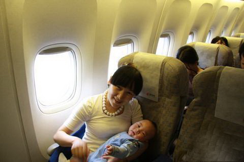 ●带上小食品或饮料,在飞机起飞与降落时给孩子食用,可以平衡耳内外的气压,减少不适感。