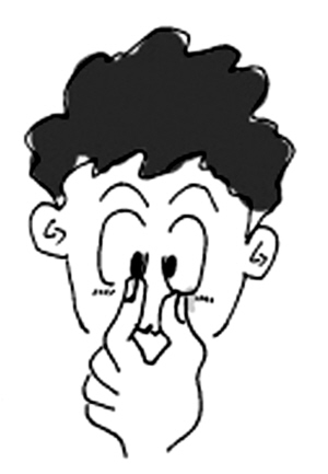 擤过鼻血(清除血块)及塞过棉花之后,用拇指及食指将鼻孔捏在一起,持续压紧5—7分钟。假使仍未止血,再重复塞棉花及捏鼻子的动作,仍然压5-7分钟。这样应可收到止血功效。