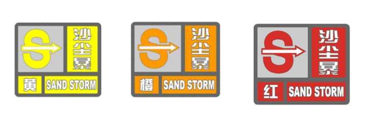 沙尘暴预警信号分三级,分别以黄色、橙色、红色表示。