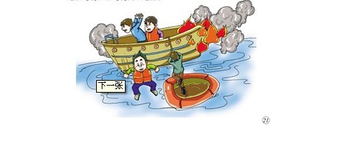 (6)当船上大火将直通露天的梯道封锁,可以到顶层,施放绳缆,沿绳缆向下逃生。