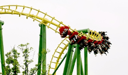 大型游乐设施在运行中,切不可随意站立或半蹲,更不允许在运行中拍照。
