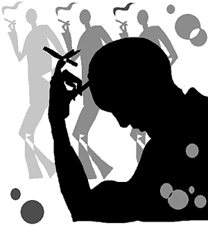 研究人员观察了8704名患者,其中一些人吸烟,其余不抽烟,结果吸烟者患抑郁症的机率几乎是不抽烟者的4倍。