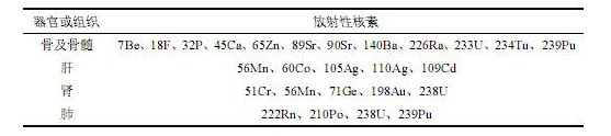 表2 放射性核素在人体内的分布