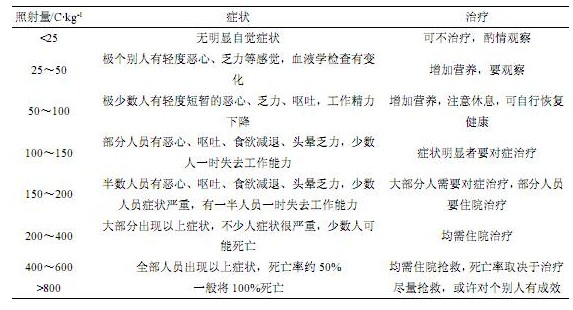 表 3 一次全身受到大剂量放射性照射后引起的症状