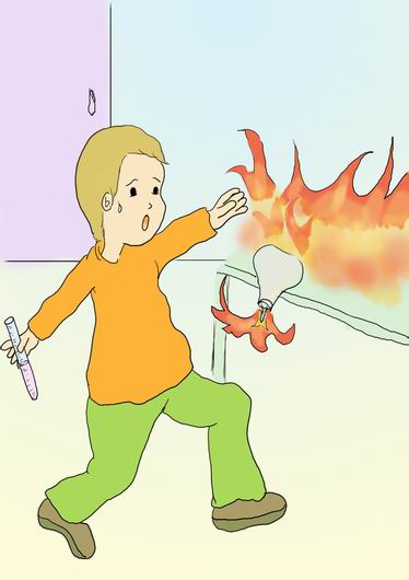 进入实验室后,大家都兴奋地说着笑着,里面的很多东西都是大家平时没有见过的。老师一连说了几声“安静”之后,教室里的声音才小了。随后,老师在实验桌前讲起了实验室里的安全准则。大家都聚精会神地听着。只有坐在小叶和皮皮前排的小路闲不住,他一会儿看看这个,一会儿又动动那个,根本没有听到老师在讲什么。当开始分组实验时,他根本不知道该怎么操作,头脑里一片茫然,一着急,不小心撞翻了正燃着的酒精灯,顿时,实验台上一片火海,他的袖口也着了火,和他一起实验的同学们都惊叫着闪开了。老师见状,赶紧抓起墙角放着的沙包,就向燃着的桌面掷去,并迅速扑灭了小路袖口上的火苗。小路吓得惊慌失措:“真险啊,差点酿成大祸。”