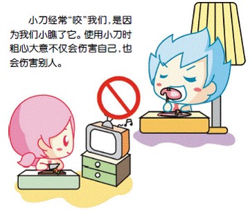 2、使用刀具时不能向着身体的方向用力,要向外用力。