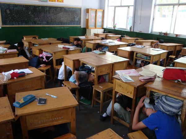 地震来临,校内所有人员要按照规定的紧急疏散路线迅速、有序地撤离疏散到操场,等待学校统筹安置。