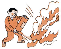 6.对着火源根部喷射,并不断推前,直至把火焰扑灭