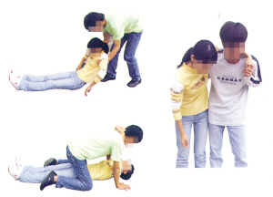 a、单人搬运:由一个人进行搬运。常见的有扶持法、抱持法、背法。