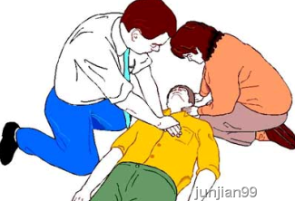 急救:务必抢在呼吸、心跳停止4分钟之内进行,检查患者意识、呼吸及脉搏的时间应在10秒内完成。这时,若现场除病人外只有一个人,宁可暂缓送医院,也要立刻开始人工心肺复苏,具体操作可参照如下几项。