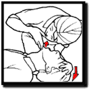 2、人工呼吸有多种方法,最常用的是口对口人工呼吸法和口对鼻人工呼吸法。口对口人工呼吸不需任何器械,操作时病人仰卧,头后仰,将病人衣领解开,腰带放松,清除口鼻内异物痰液,取出假牙,拉出舌头,保持呼吸道畅通。操作者一手托起下颌,另一手捏紧鼻孔,先深吸一口气,再对病人口部用力吹入,如此反复施行。如病人胸壁能随每次吹气而举起,吹气停止后于病人口部能感到气流呼出时,即证明人工呼吸有效。人工呼吸每分钟进行16次。如病人牙关紧闭,不能口对口呼吸则可进行口对鼻呼吸。如果同时有心跳停止,则可人工呼吸同时作胸外心脏按摩。一般人工呼吸与胸外心脏按摩比率为 1:4,即作一次人工呼吸,需作4次胸外心脏按摩。