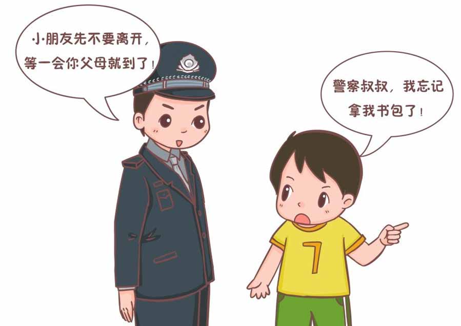 当警察到场后,不要立即与警察离开原地,如需离开需要在离开前请警察与父母通话沟通。