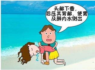 (2)头部下垂,后压其背部,使胃及肺内水倒出。