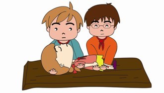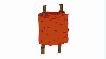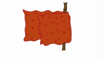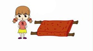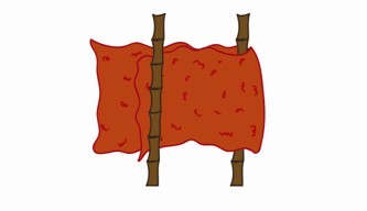 (1)先将毛毯或结实的床单展开,约在中间的1/3区域两边各放上一根竹竿或木棒(注意竹竿或木棒要有足够的承载能力)。