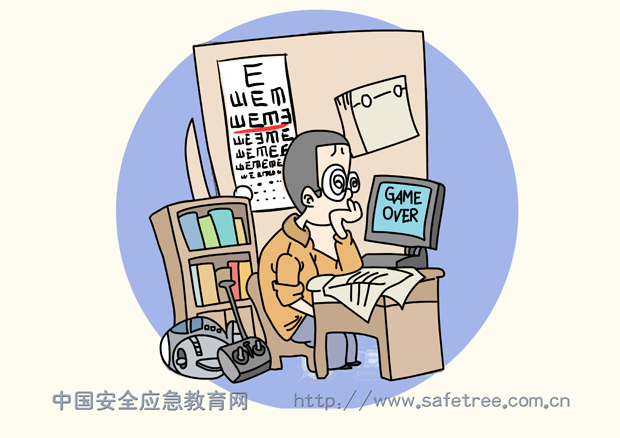 学生林冲非常喜欢打游戏机。平时家长管得严,根本不让他玩,怕影响学习。一次去同学家,在同学的劝说下他又玩上了游戏机,一打就是四个小时,眼睛在不到一米的距离上盯着电视屏幕一动不动。晚上回到家,他的眼睛开始流泪,看什么都是花的。第二天到学校上课,他感到黑板上的字也是花的,头疼难受,来到医院一检查,是睫状体过度不症状消除了,但视力还是受到了影响,不得不配上眼镜。