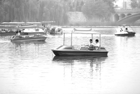 炎热天气,许多市民到城区湭河公园划船觅凉。记者留意到,市民在划船享受凉意的同时,大都存在不穿救生衣、坐到船头戏水等冒险行为,十分危险。