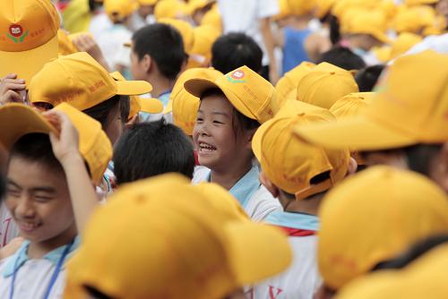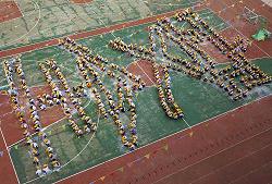 8月27日,广西南宁市扶壮学校,600多名孩子排成“安全”两字。当日,广西最大的农民工子弟学校——南宁市扶壮学校为近3000名学生赠送安全小黄帽,旨在提高孩子们的安全意识。