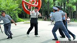 今年4月12日,就在南模初级中学门口,曾发生过一起吸毒女试图闯入校园的事件,被保安及时制服。“当时那个吸毒女产生了幻觉,认为有人追杀她,失去控制一定要闯进学校,还掏出了30公分的刀子,当时我们2名保安人员用专业手段迅速制服了她,来上学的学生根本就没发觉有异样。”而那两名保安就参加了去年的集训。