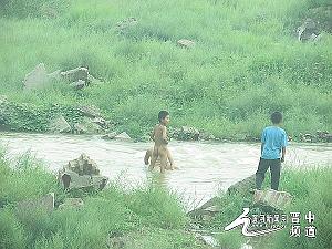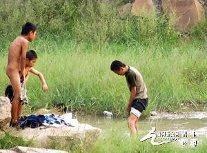 8月29日,记者在乌马河见到4名小学生模样的孩子,在戏水游泳。岸边没有见到提示标志,对于下河玩水,小学生们说他们知道有危险,在记者劝告下离开河滩。