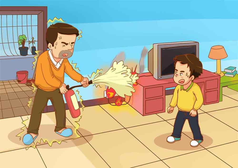 任何大火,开始的时候都很小,如果在家中备好灭火器,并能熟练地操作它,那么当星星之火燃起时,就可以将它及时扑灭。当大火一旦不可收拾时,就必须首先考虑逃生。