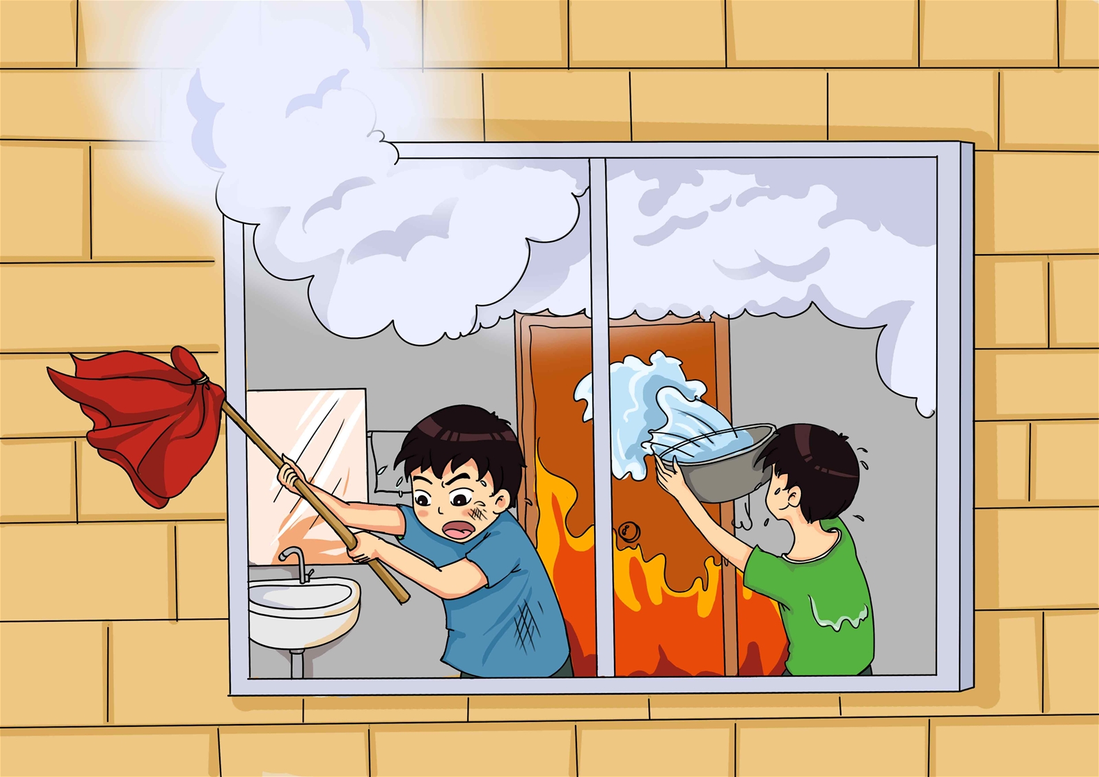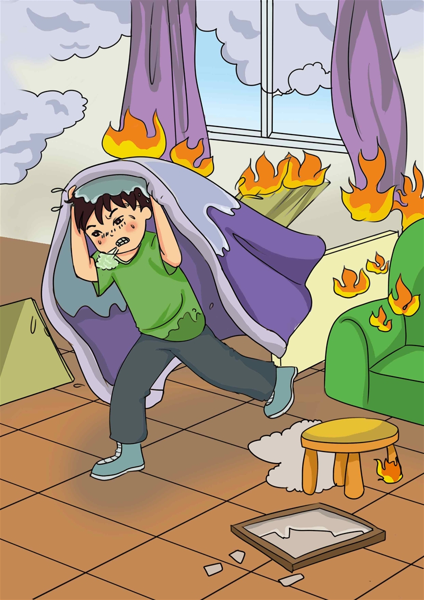 想一想,如果是你被困火场,你会怎么做呢?