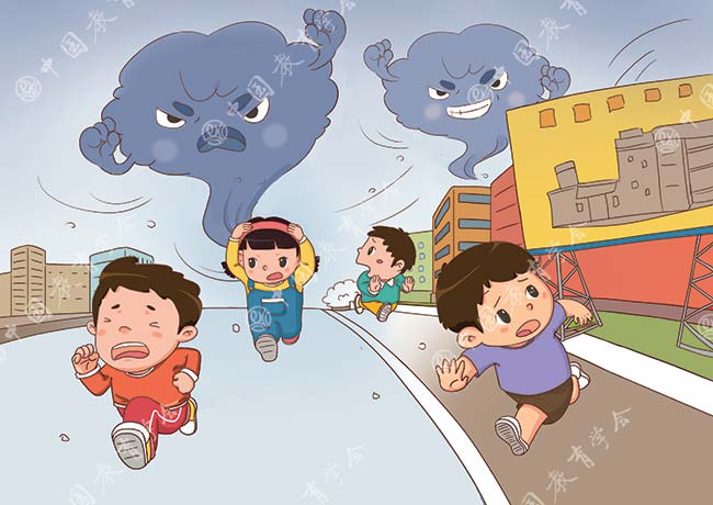风爷爷发怒了,鼓起腮帮“呼呼”地吹着大地,大树叔叔摇晃着身体,高处的广告牌被吹落下来。风爷爷还使劲儿地拍打着窗户,仿佛随时要闯入屋子。此时,天空开始电闪雷鸣,暴雨倾盆而下,路上的行人都纷纷往家跑去。