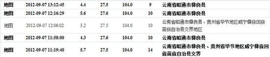 据中国地震台网测定,9月7日11时19分,云南省昭通市彝良县与贵州省毕节地区威宁彝族回族苗族自治县交界发生5.7级地震,震源深度14公里。12时16分,昭通市彝良县又发生5.6级地震,震源深度10公里。