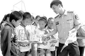 9月5日,陕县消防官兵向陕州小学师生们发放《中小学生消防安全知识宝典》。