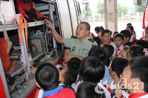 为深入贯彻安徽省教育厅、省公安厅下发的《关于在全省学校开展消防宣传教育活动的通知》(皖教秘思政【2012】44号)的文件要求,普及消防常识,增强在校学生的消防安全意识,提升逃生自救的能力,9月13日,安徽马鞍山市四村小学在市武警消防中队的积极支持下开展了一次别开生面的社会实践活动,同学们得以第一次近距离观察和体验了消防队员的训练和生活。