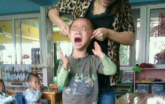一张幼儿园老师虐待儿童的照片被人传上微博。