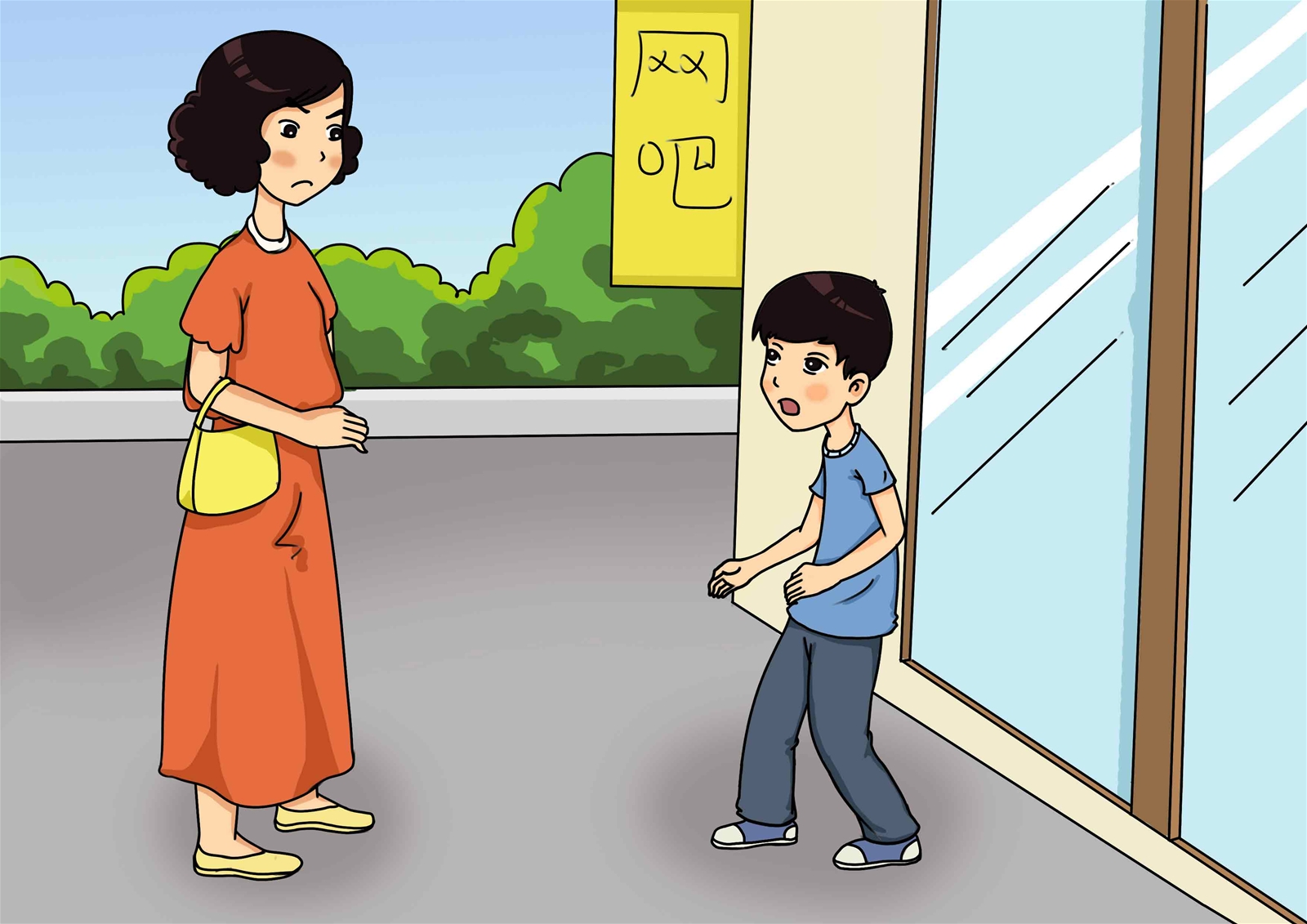 第二天,小明匆匆吃过午饭就离家上学去了,妈妈悄悄地跟在他后面。果然发现小明拐进学校附近的一条小弄堂,妈妈紧跟上去,发现那儿新开了一家网吧。里面挤满了人,大多数都在玩网络游戏,大部分都还是学生模样。小明刚进去,忽听背后妈妈喊他:“小明”小明一惊,回头看到妈妈正生气地望着他。一路上,在妈妈的逼问下,小明承认自己经常来这里玩游戏。