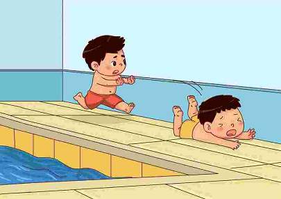 ◎ 游泳池的地板特别滑,不要在池边与小伙伴追逐打闹。