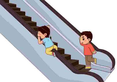 周末,小东和妈妈到商场买东西,趁妈妈不注意,小东一个人跑到自动扶梯上玩。小东乘着电梯上上下下,高兴极了。玩了一会,小东又有了新玩法,开始在下行的电梯上逆向行走……
