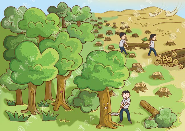 过度开发自然资源、过量砍伐森林、过度开垦土地都会破坏地面植被,使土壤失去了植物的保护,形成大面积沙漠化土地,直接加速了沙尘暴的形成和发育。
