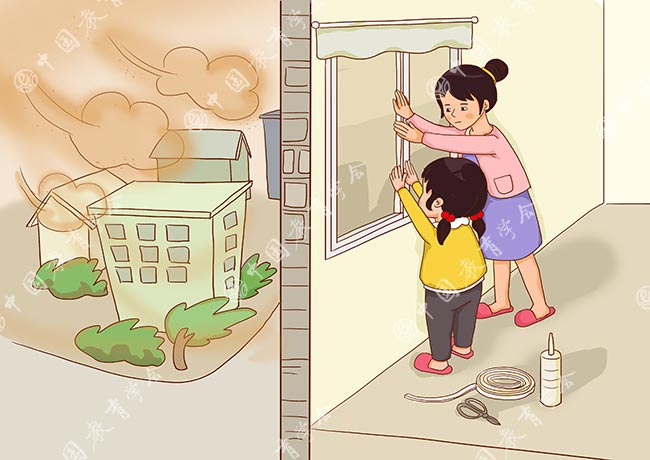及时关闭门窗,必要时可用胶条对门窗进行密封。