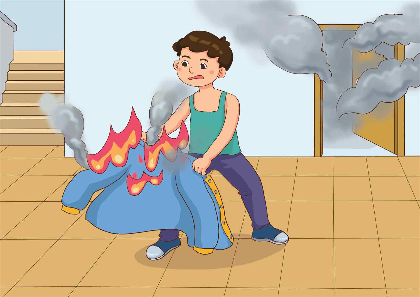 当身上只穿一件单衣时,千万不能跑。背后衣服着火时,应躺在地上;衣服前后都着火时,则应在地上来回滚动,滚动的速度不能快,否则火不容易被压灭。