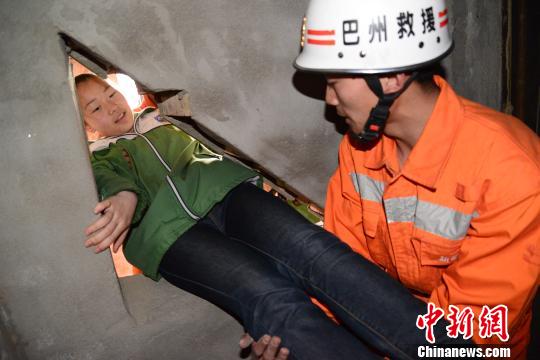 地震灾害模拟现场,消防官兵协助学生练习如何逃生。
